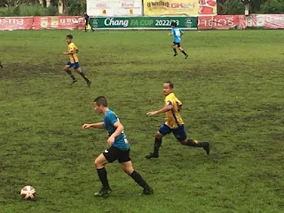 The pitch was boggy from the outset and cut up badly as the match proceeded leading to plenty of errors from both sides and an entertaining encounter. In the early exchanges, the “home” player Kittiiphong Areerak had a shot easily saved by Chanayut Tosanthia.